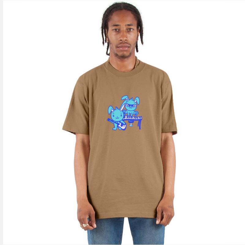 2 cute rabbits bunnys two cool friends team guitar