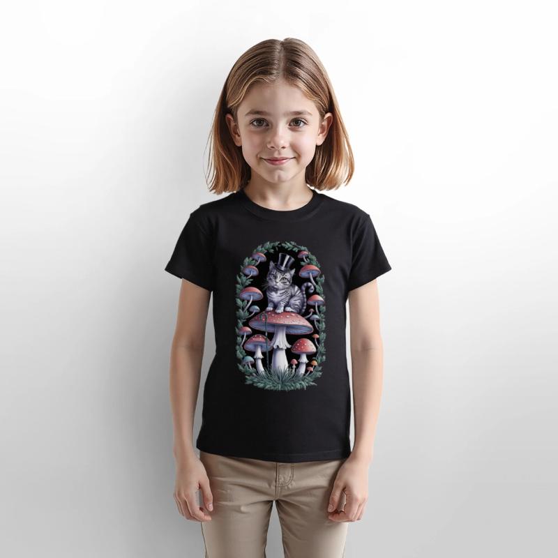 Gentleman cat hatter sitting on mushroom, black