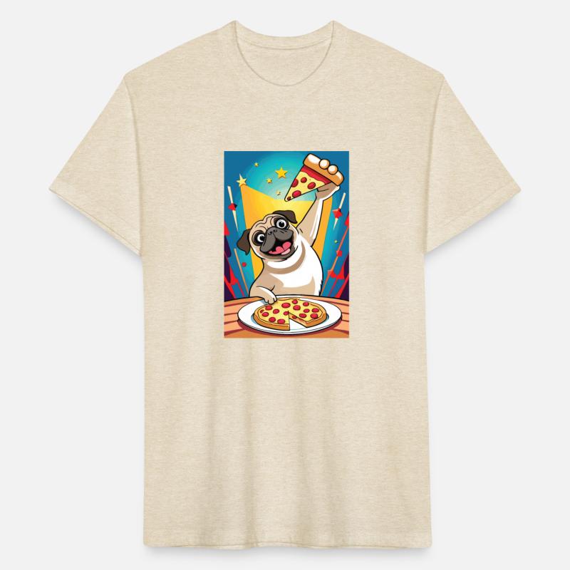 pug dog eating pizza